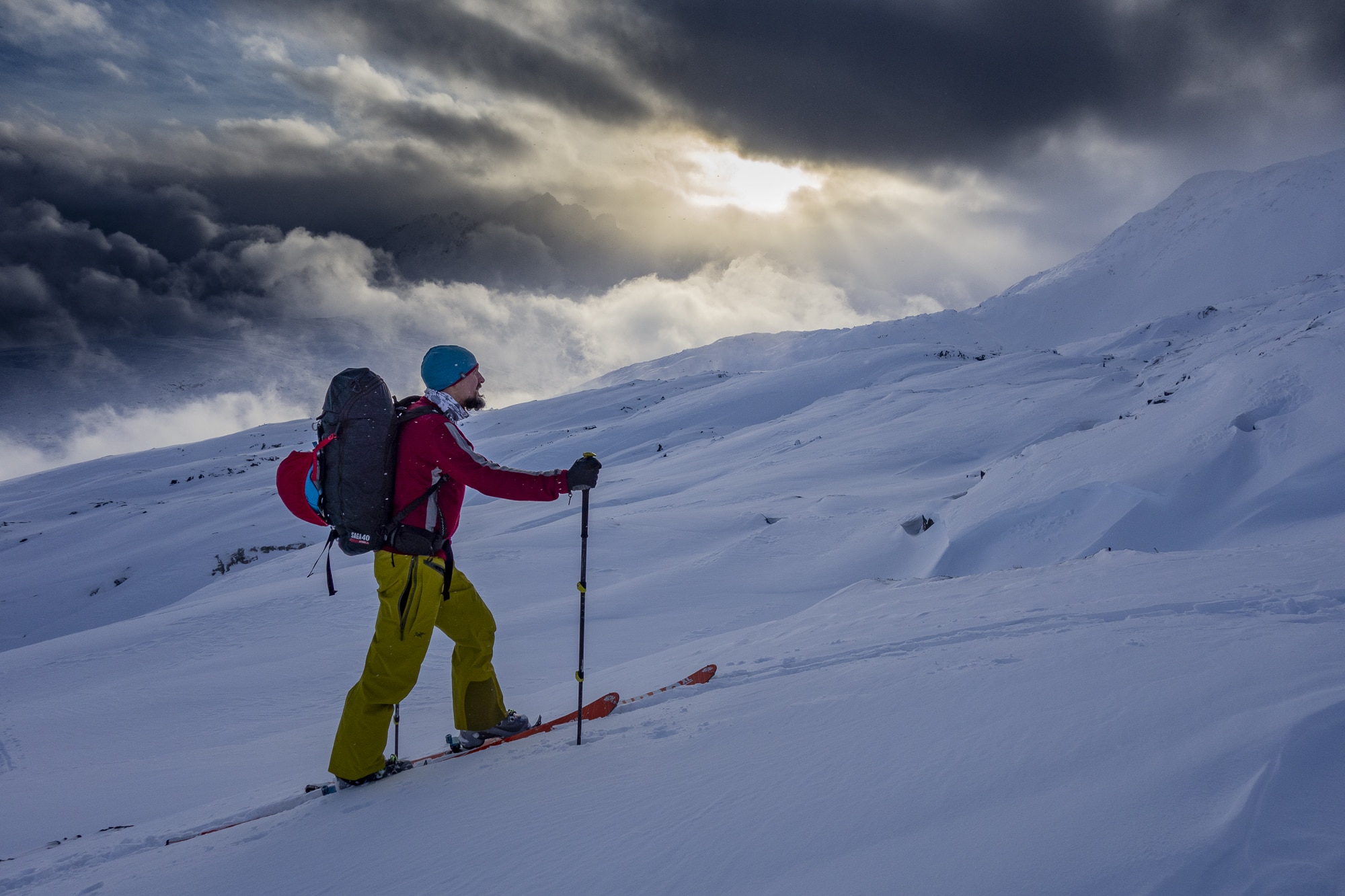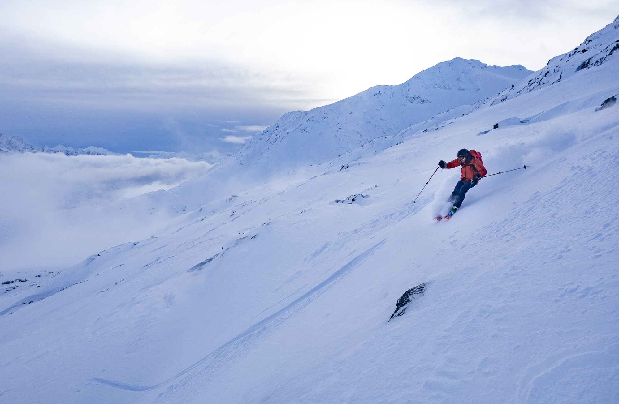 Dropping from the top of Feather Peak.