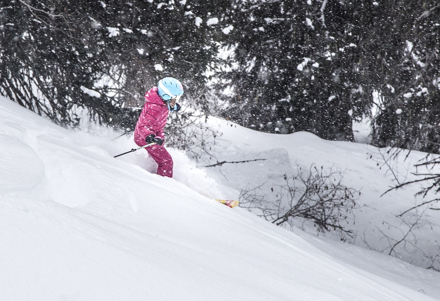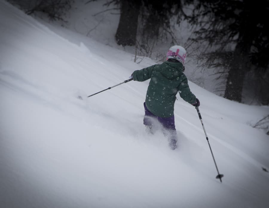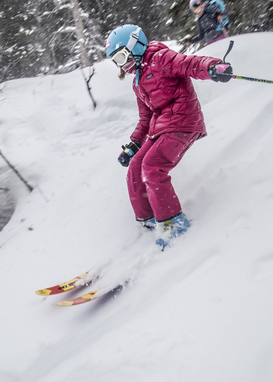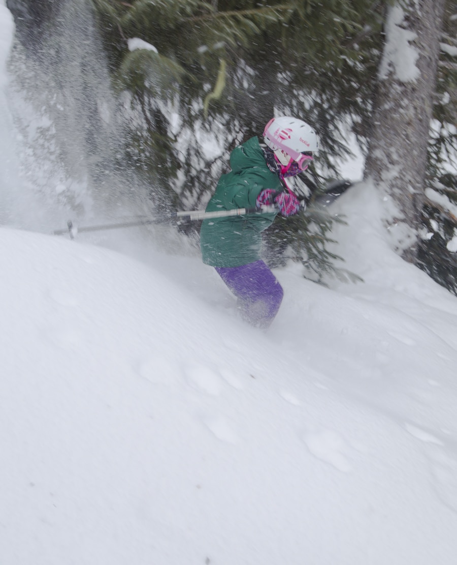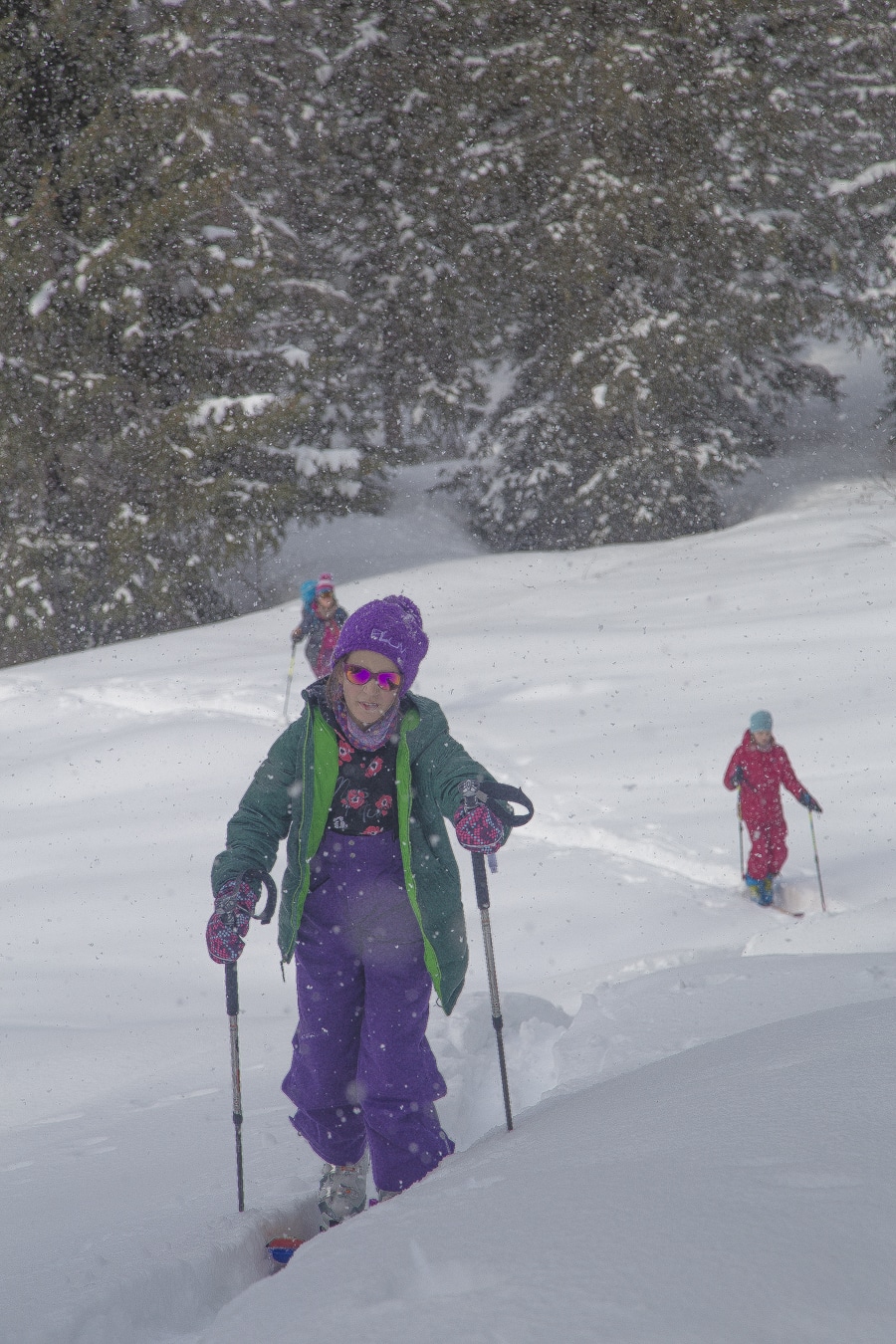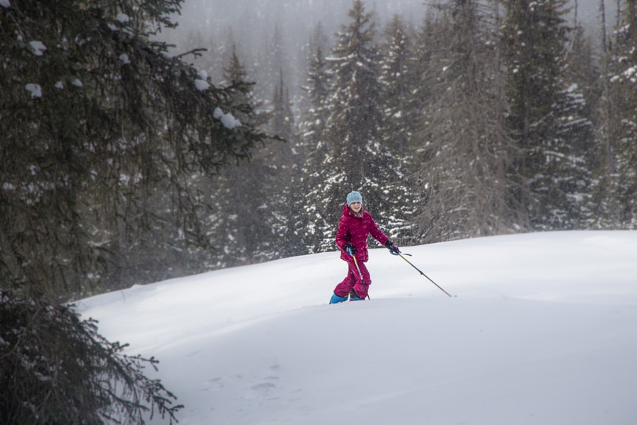 When the weather was not that great, we went into the trees where we found very nice snow and a lot of fun for the girls.