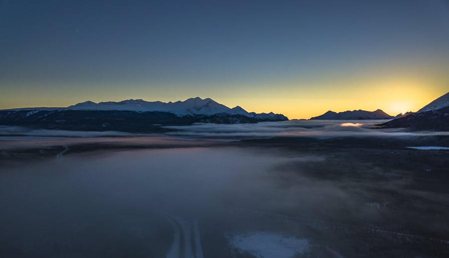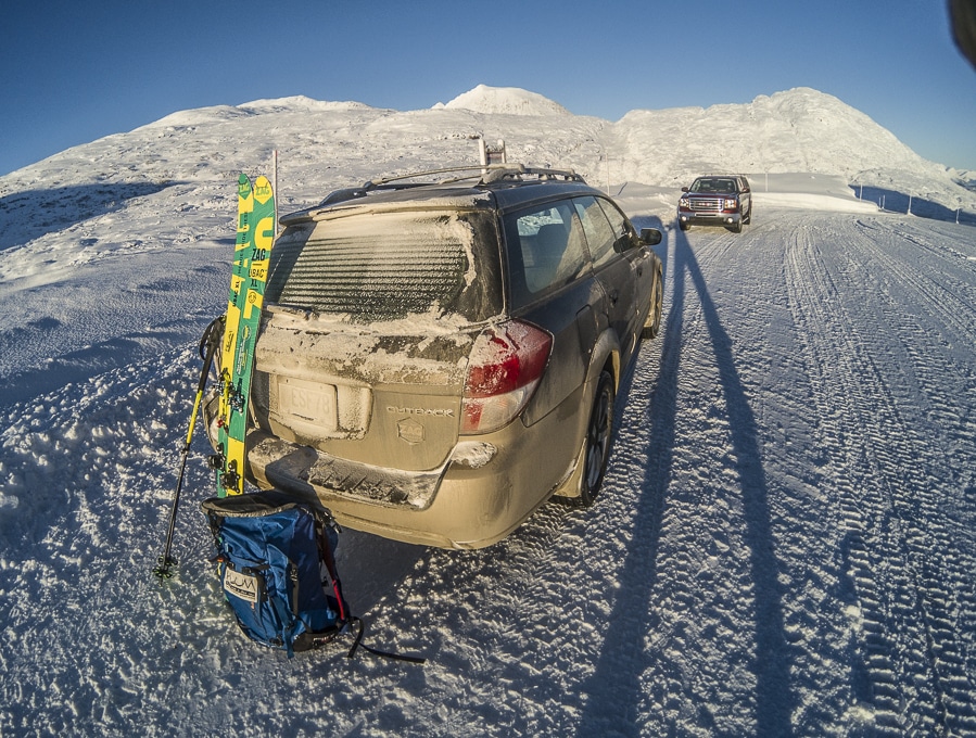 Today it was a bit hard to find the motivation to leave Whitehorse in the darkness at -27c, but the drive was wonderful, with a beautiful sunrise. The temperature at White Pas was -20c with a light north wind, but with a good inversion. It was not too busy there, just a handful of skiers and sledders. The snow conditions were great, even if the snowpack starts to be a bit affected by the northwind ( it supposed to gets worth), it is still possible to find some good pockets of great snow and finally even if the snowpack is quite different than usually, ski conditions are getting pretty similar to what we have normally in the early season.