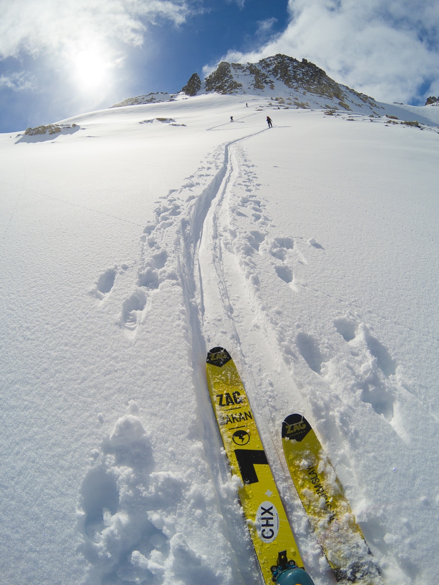 Thank you to ZAG for this new pair of Ubac 105, the new 2018 model which will replace the Ubac XL. I tested these in various conditions…sure I will keep them. Very trustable companions, they will not disappoint you. Easy to forget when skinning up because of the light weight, but so responsive when charging down, and what a grip on steep slopes and hard snow.