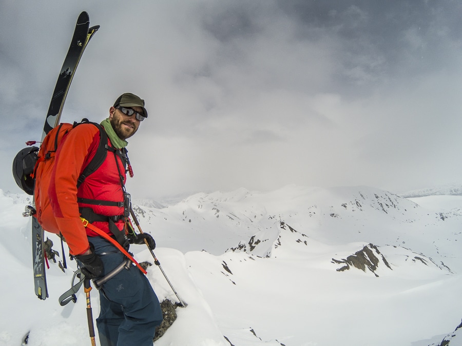 The season is not over yet, for me it looks like it is the best time of the year, with endless daylight and still reasonable temperatures, not too cold but not too warm. Stability is better than all winter long if you avoid being too late on the slopes. With a hard snowpack, it is easy to travel long distances with minimum energy. The last days, the sky was not blue bird, but the weather was not too bad with good windows of a nice and sunny sky. It is still easy to find very good corn snow or even cold, noncohesive snow… almost powder a bit higher on north faces. White Pass or Haines Pass still offer some good possibilities and you can still ski right from and to the parking lot. Haines Pass was almost dead last weekend, we did not see anybody there. In town, people are too busy getting their summer toys ready, they do not think about winter anymore. Snow stability was good but you will notice a lot of rocks, fallen from the cliffs and ridges. Yes, the earthquake did leave some tracks, especially on Haines Pass, it seems like the epicenter was very close to Kelsall Lake and Datlasaka. In the news, they said it has released a lot of avalanches, we did not notice that, but it was obvious that a lot of rocks came down that morning. We were sleeping close to Haines Pass when the ground shook…and it was quite an experience. Specialists said it was recorded between 6.2 and 6.5… and yes it woke us up quickly at 05.30, the cabin shook violently and the noise was terrible. The heavy woodstove was moved, the stove pipe was disconnected and all the shelves were unloaded. Then for 30 minutes, it was shaking again every minute with still a very loud noise. It calmed down a bit for a while but anther violent shake put us outside again….very scary experience, for us it was the most impressive earthquake we ever felt… After a few coffee, we were on our way to king Throne for a last day skiing.
