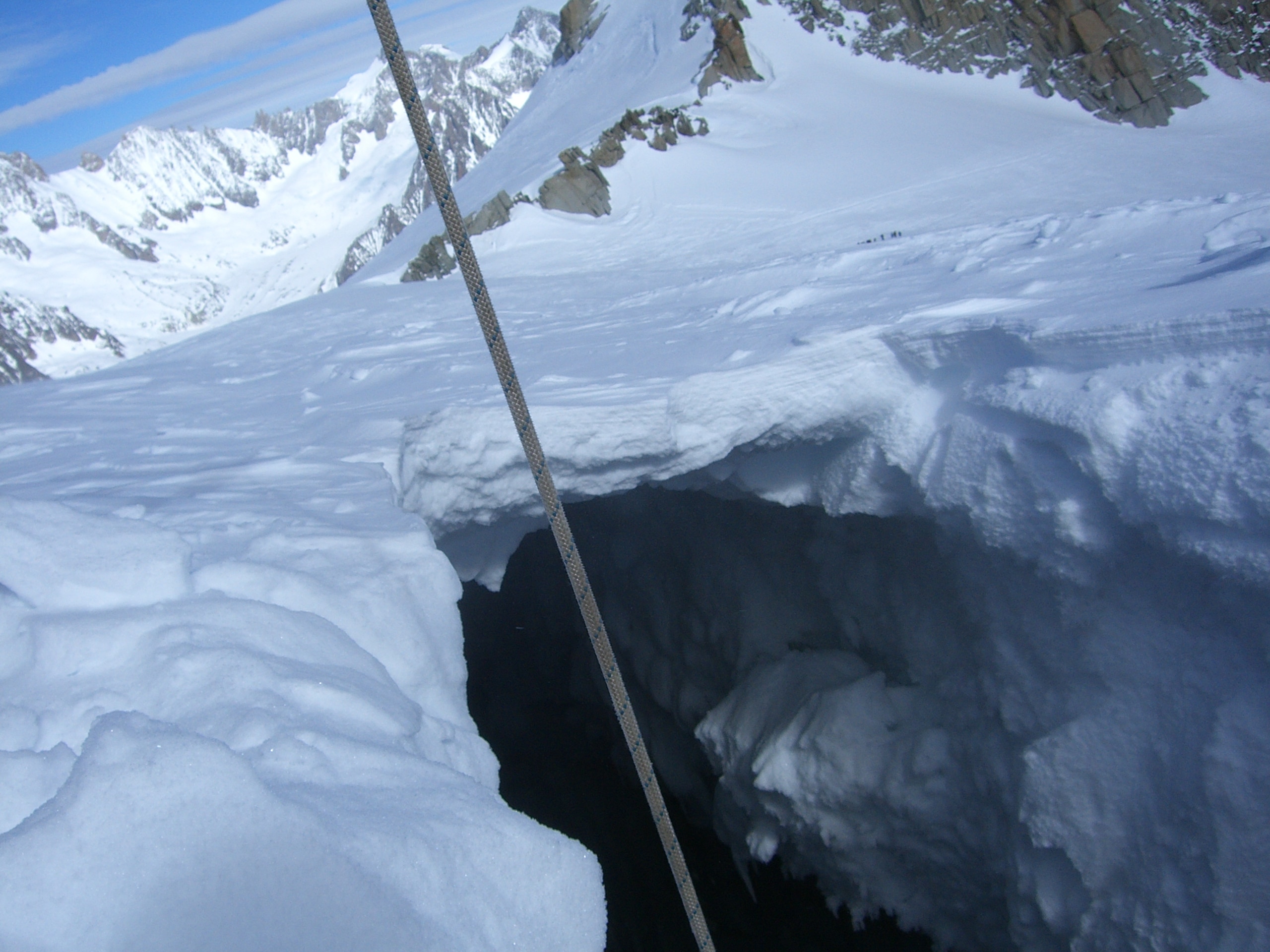 - Use proper glacier travel technique to minimize the harm done if you do end up punching part way into or falling all the way into a crevasse.