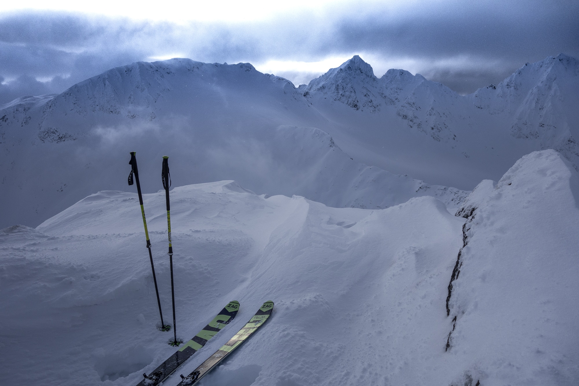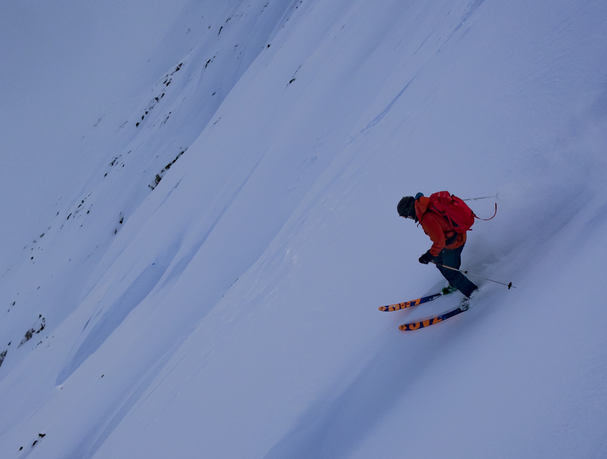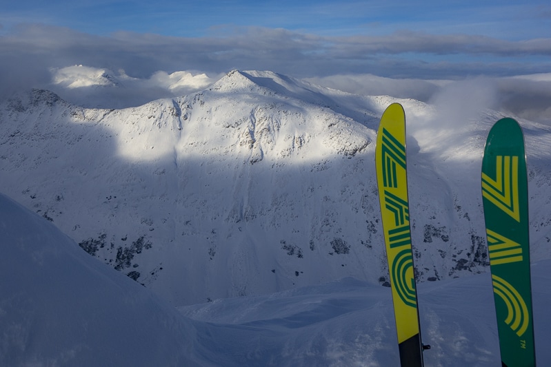 Dropping from the top of Feather Peak.